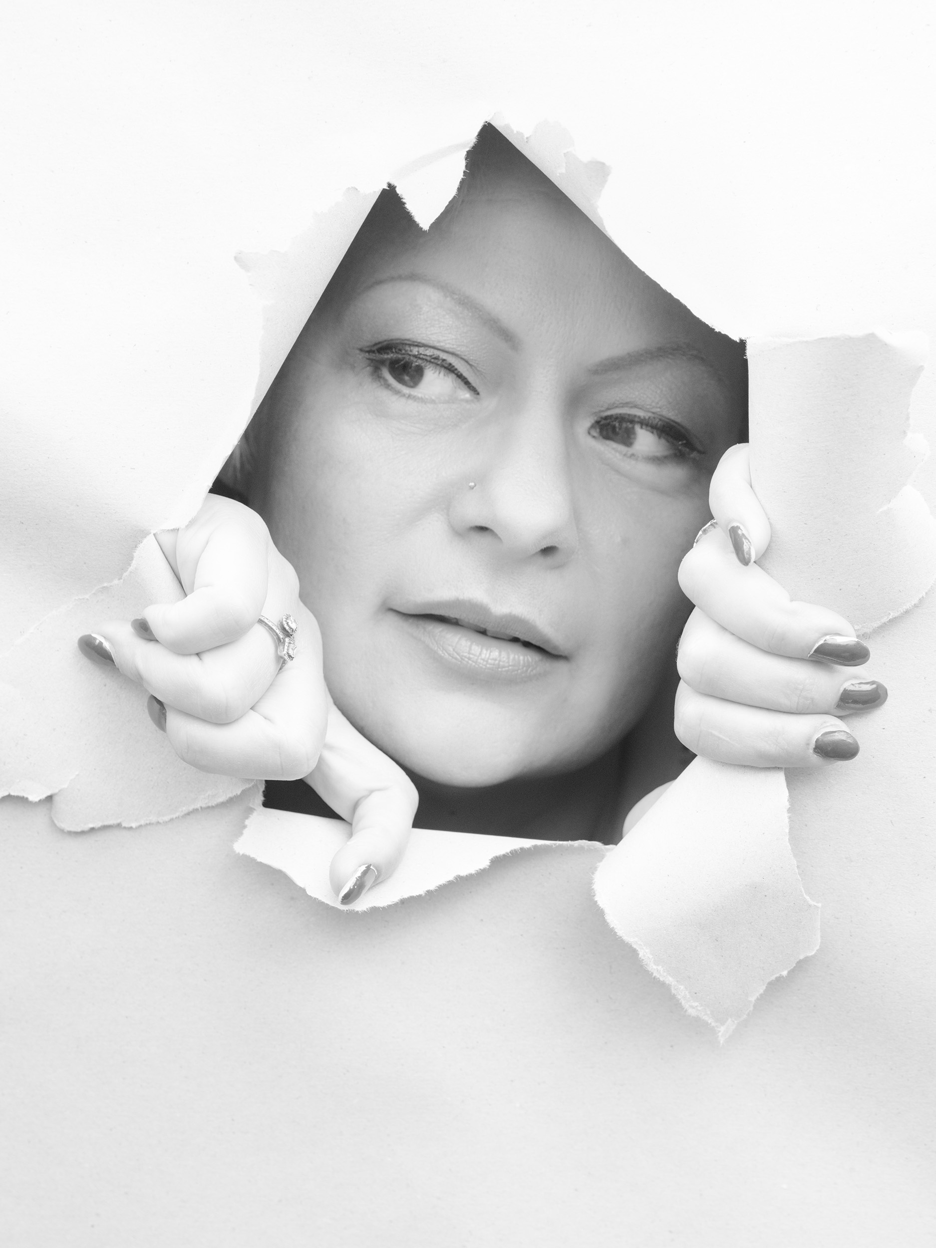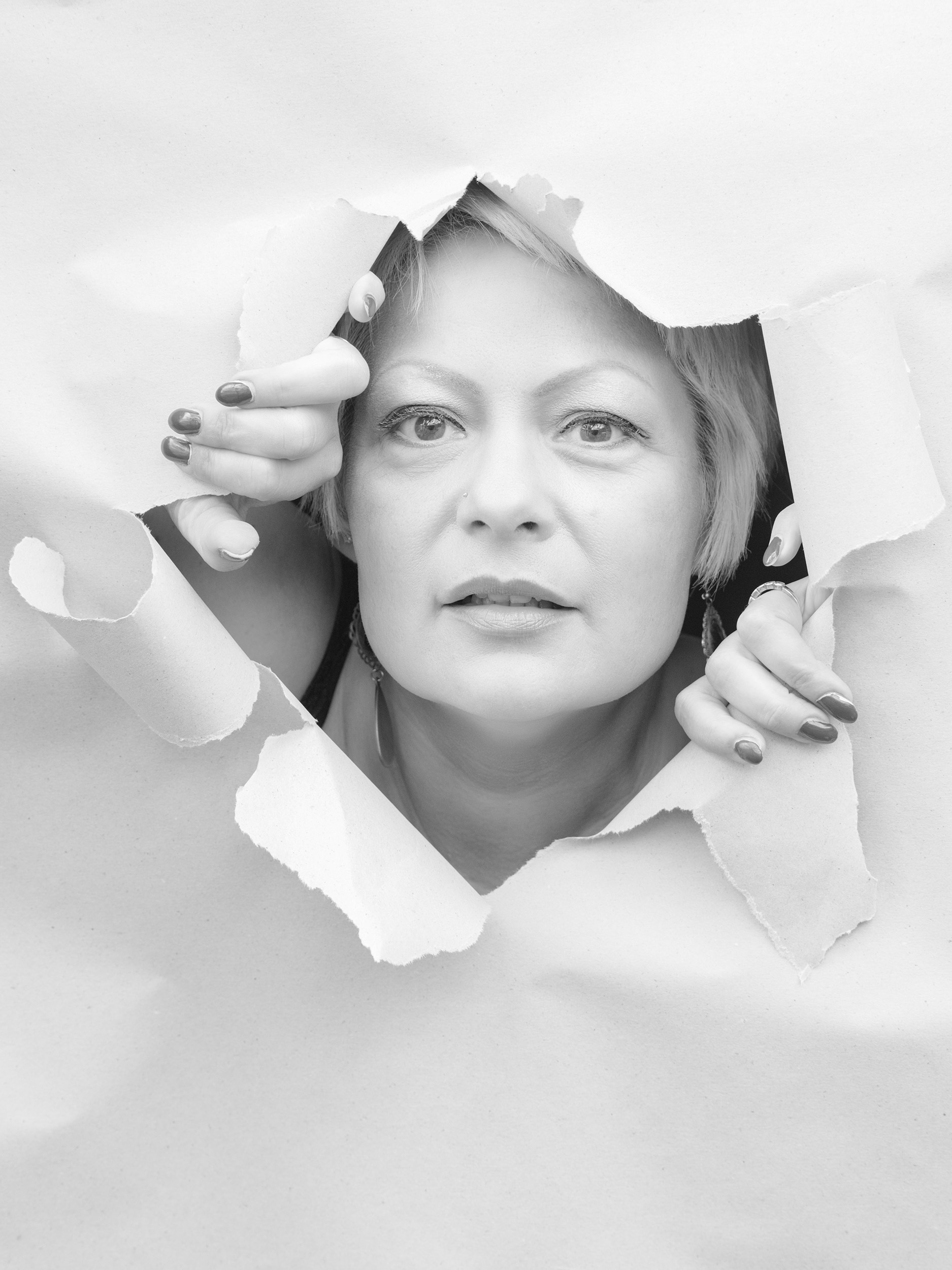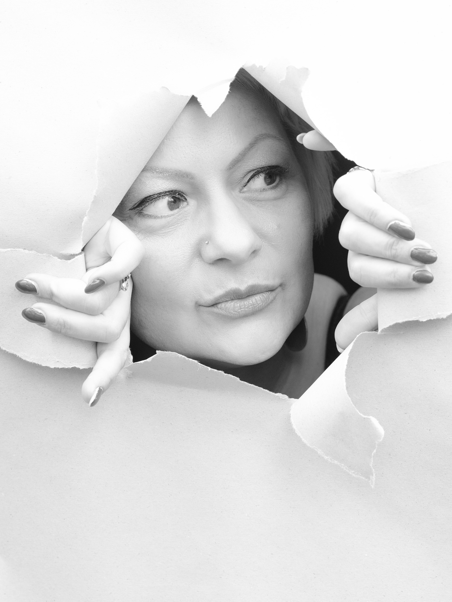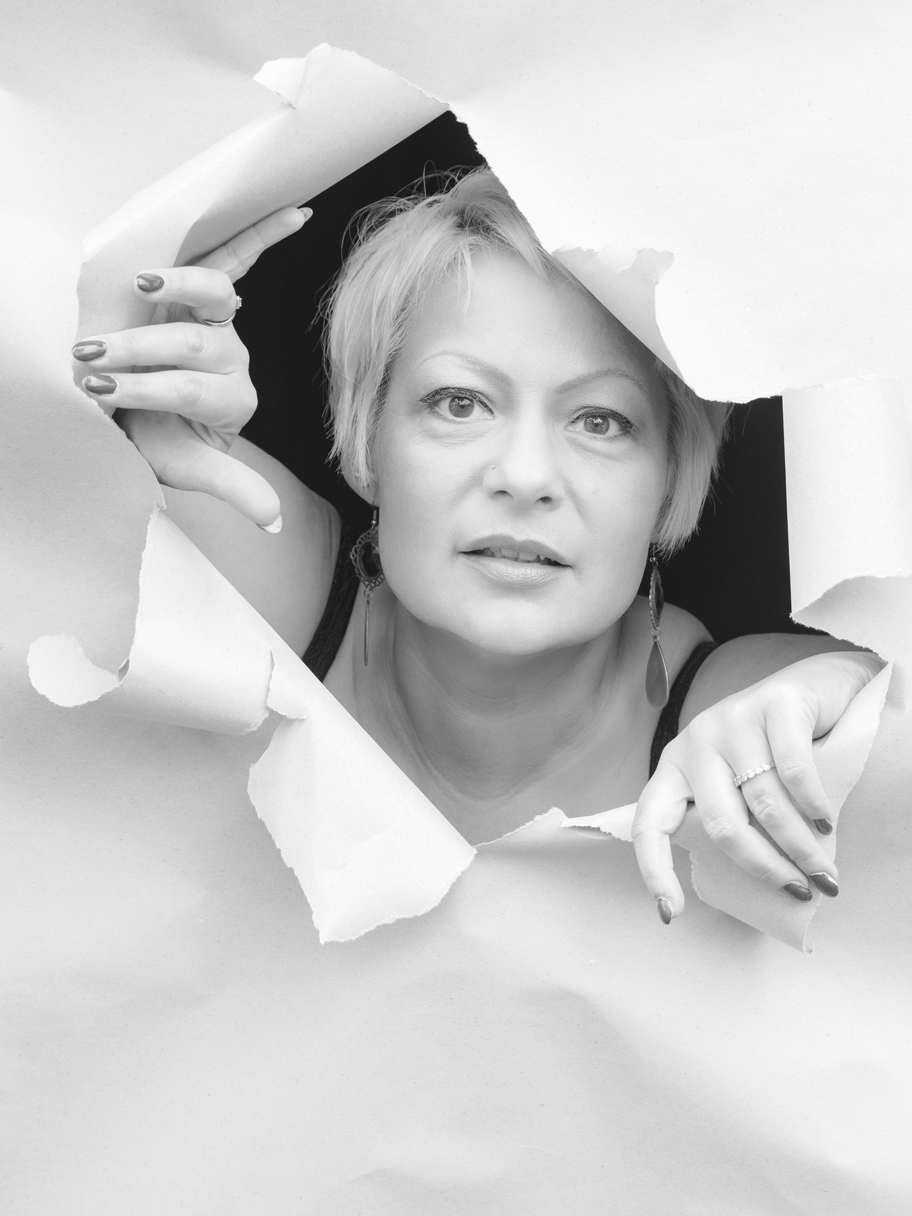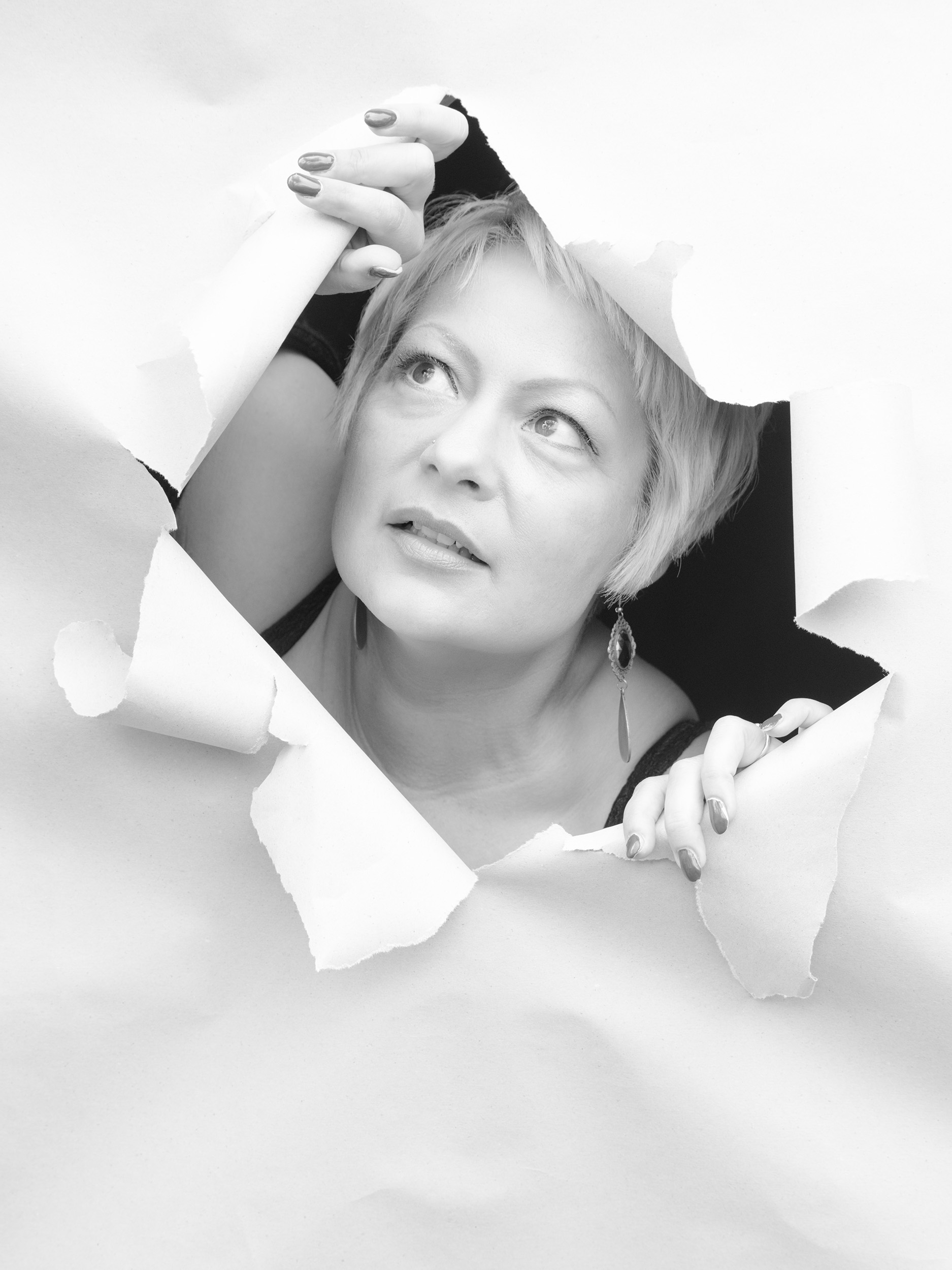 Die Serie mit dem Papier war ursprünglich eine spontane Idee. Ich hatte im Internet eine Inspiration gesehen und wollte das einfach ausprobieren. Papier ist ein spannendes Material. Es ist flexibel, reduziert, grafisch. Es kann schützen, trennen, öffnen oder auch Emotionen verstärken.